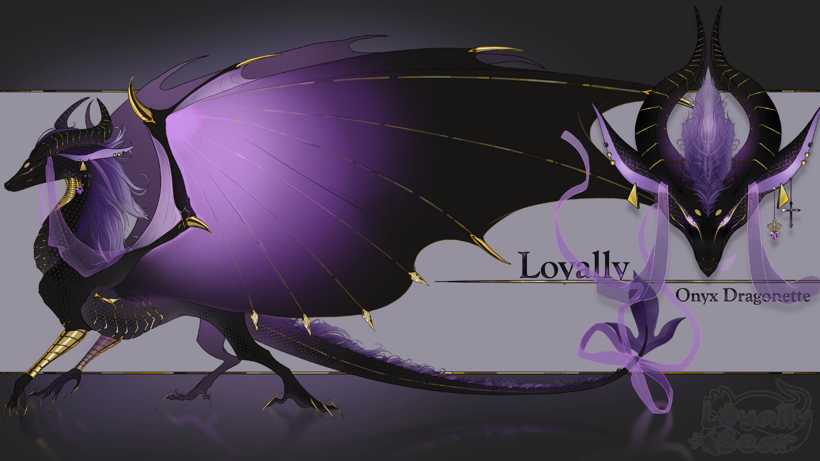My horns and scales are made of onyx. I have gold-tipped wings, gold in my horns, on my face, my throat protected with a gold-ringed cover, scales lined with gold, and gold claws 🐉