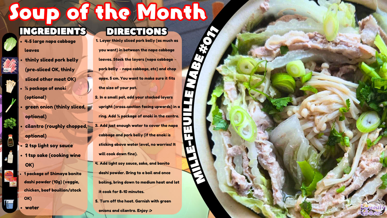 !menu: Shows current/most recent cooking stream + public Google doc of my past cooking streams